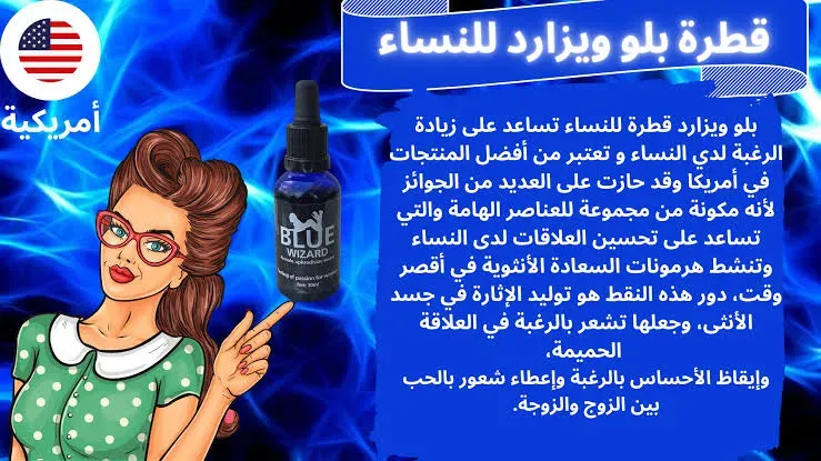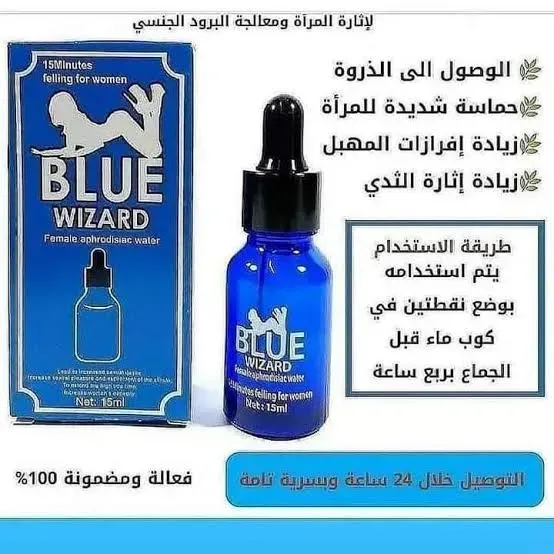 🍁#قطرة (بلو ويزارد - Blue Wizard) الأمريكية الأصلية #لإثارة #المرأة: هو منتج طبيعي 100% على شكل قطرات شفافة, وتعتمد (صيغة, وتركيبة) مكوناتها على بحوث علمية حديثة, وعلماً بأنه ليس لها (طعم, ), ولا يوجد لها أي (آثار, ولا أضرار, ولا أعراض)🌿🌹 جانبية نهائياً, ومستخلصه من (مواد, وأعشاب, ونباتات) طبيعية مثل الجنسنغ🌿🌹 🍁#طريقة #الاستخدام: يتم وضع (قطرة - نقط) من (2 إلى 3) ملم خفيفة على كأس (ماء, أو عصير) بارد, حيث يبدأ وضوح مفعولها (الرائع, والمثير) مباشرة أثناء العلاقه الحميمة خلال (20 دقائق) من تناوله.💞🌹🌹 ==> 🍁محتوى عبوة قطرة الإثارة: عبوة زجاجية (15ml) .🌹🌹🌿