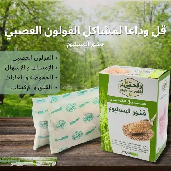 💥قشور البسيليوم.صديق القولون ( سيليوم هو مادة طبيعية تستخرج من بذور القاطونة) من فوائد قشور بسيليوم 💥تحمي الجهاز الهضمي من السموم والبقايا الضارة وتساعد على التخلص منها 💥تقليل من مستوى الدهون في الدم 💥تساعد في علاج الإسهال 💥قشور بسيليوم والسكري تساعد الألياف على ضبط مستوى السكر في الدم اثبتت دراسات ان قشور البسليوم تساعد على تخفيف الوزن ..يمكن استعمالها مع نظام غذائي متوازن فتسااعد على الإحساس بالشبع ( تساعد الناس لي عندهم فرط الشهية) . 🎀دواعي الإستعمال: 👈في حالات القولون العصبي. 👈في حالات الامساك المزمن. 👈في حالات ارتفاع الكوليسترول. 👈في حالات ارتفاع الدهون الضارة. 🎀كيفية الإستعمال: 🌺ملعقتان قهوة في كوب من الماء أو عصير (غير غازي) تحرك بسرعة وتشرب مرتين في اليوم.