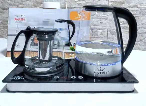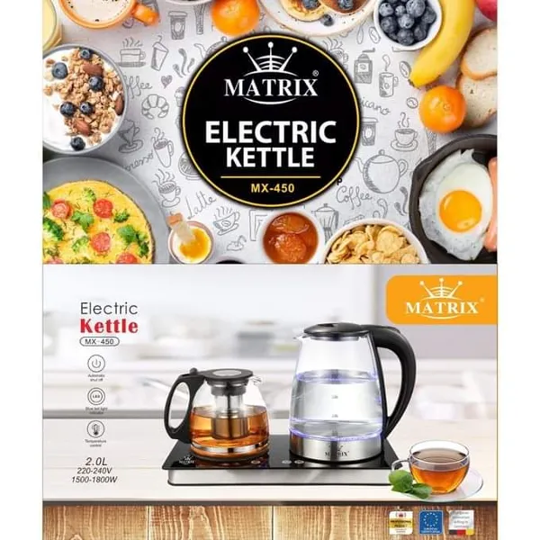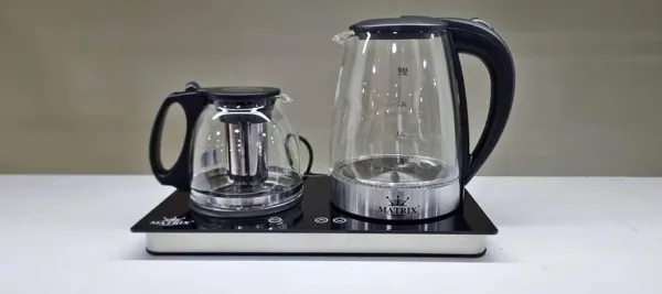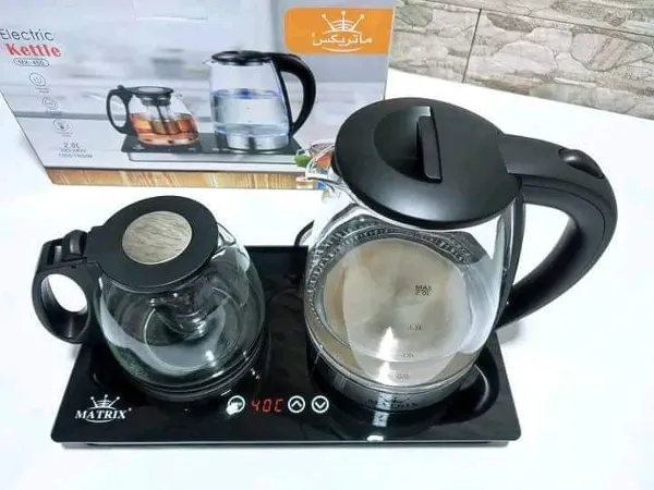غلاية كهربائية 2 في 1 من العلامة الرائدة Matrix ( غلاية + ابريق الشاي او القهوة ) LED تأتي لوحة تحكم لمسية بجهاز الاستشعار الإلكتروني بما في ذلك الشاشة مصنوع من الزجاج المقاوم للحرارة عالي الجودة استمتع بالشاي اللذيذ أو القهوة الطازجة أو المشروبات سريعة التحضير براحة وسهولة في ظرف ثواني فقط تسخن مشروبك المفضل بسرعة.