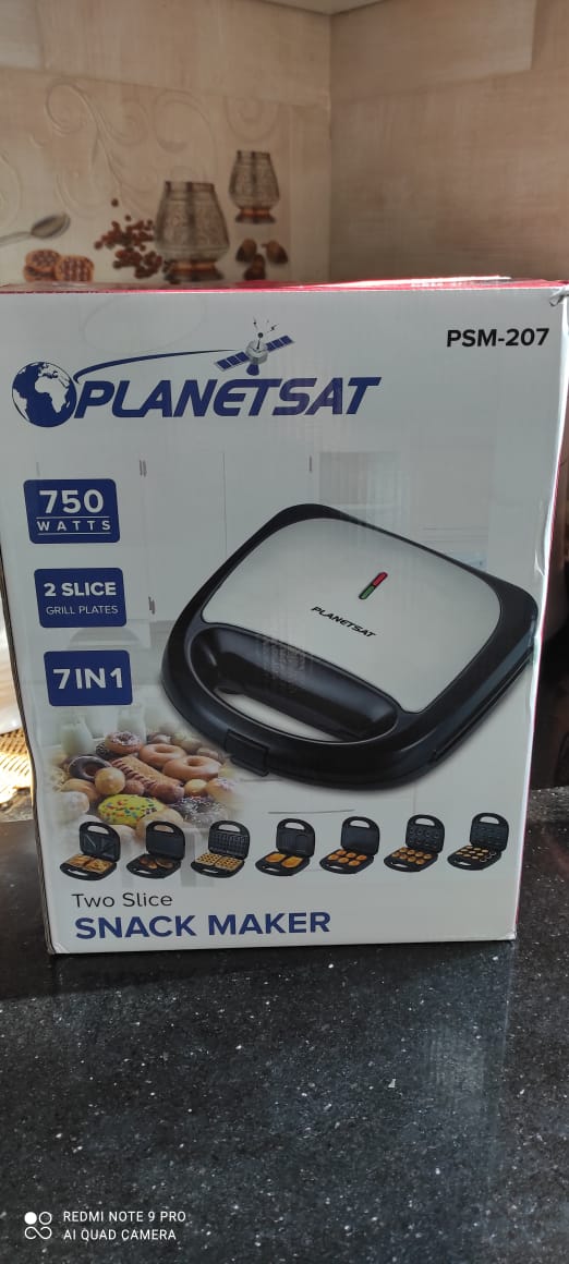هذا المنتج هو جهاز طهي متعدد الوظائف من علامة PLANETSAT، موديل PSM-207، بقوة 750 واط. يتميز الجهاز بوجود مجموعة متنوعة من الصفائح القابلة للتبديل، مما يجعله مثاليًا لتحضير عدة أنواع من المأكولات، مثل: الشواء (الشواية المسطحة والمخططة) الوافل (لوح خاص لصنع الوافل) المافن أو الكعك الصغير الكرات أو الكعك الدائري السندويشات المثلثة يتميز الجهاز بتصميم أنيق وسهل الاستخدام، وهو خيار رائع لمحبي الطهي المنزلي المتعدد الاستخدامات.