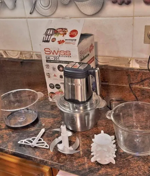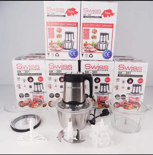تخفيضاااات رمضان الكريم عرض محدود احسن سعر في السوق 🤩الرحاية السويسرية🇨🇭 🇪🇺5 hachoir swiss kitchen الحل السريع و العجيب 🇨🇭يرحيلك اللحوم الخضروات الاعشاب الفواكه الجافة و كامل واش تحبي في ضرف قياسي 🥳🥳🥳 مزود بعدة اكسسوارات تقدري تقشري بيه الكاوكاو و الثوم ب 3 أوعية مختلفة من الاينوكس، الزجاج و البلاستيك لي تقدري تخصصي كل وعاء لنوع مخصص من الطعام و يخدملك حتا المايوناز و يطلعلك كريم شونتيي. ✅ 300 واط ✅ 4 شفرات من الفولاذ المقاوم للصدأ ✅ 5 في 1 ✅ 3 أوعية مختلفة ✅ سهل الاستعمال