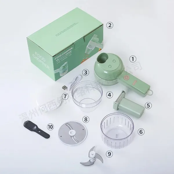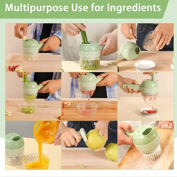 قطاعة خضراوات 4en1 الي باش تسهلك تطيبك 🔥🔥 وهكا تعدي اقل وقت في كوجينتك😉 🕒 تنجم تقصلك جميع أنواع الخضروات 🥕🍅🥦 حتى اللحوم و الدجاج في دقائق 👈🏼 سلاطتك تحضر فيسع و خضرتك تتقص في دقيقتين!! 👈🏼 اسهلك التطيب ، تصنف على كيف كيفك😋 قابل للشحن بكابل USB مع قوة محرك W40 و صالح حتى 3 سنوات 😍