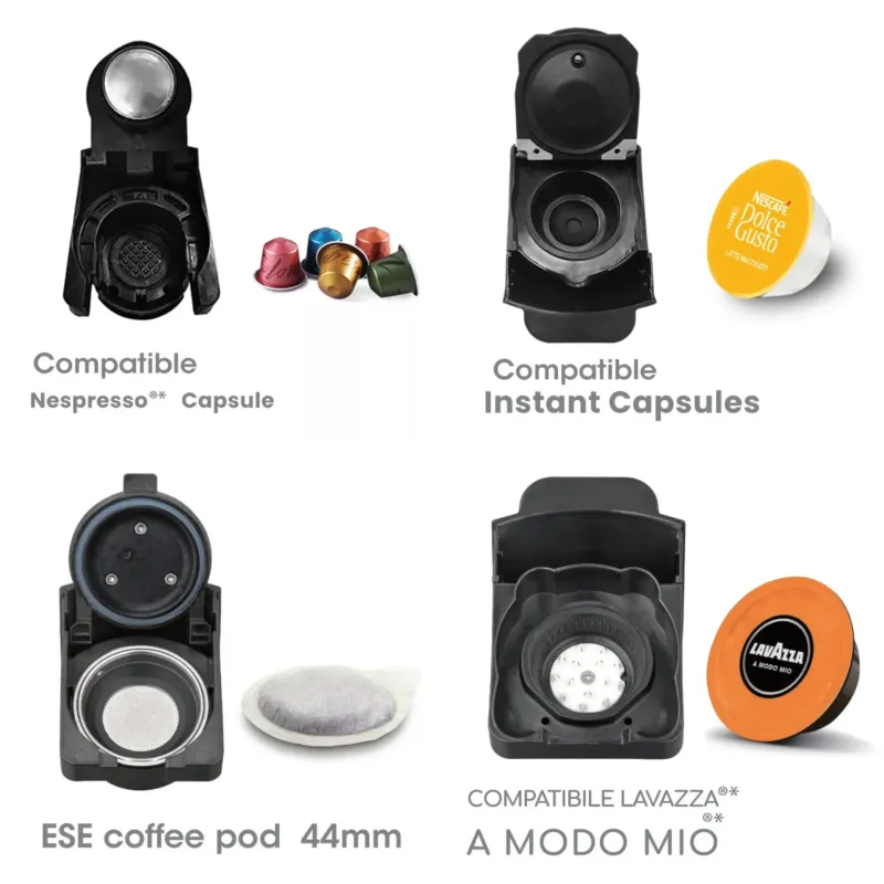 وضع القهوة القابل للتحويل (كبسولات نسبرسو ، كبسولات دولتشي غوستو ، مسحوق القهوة - لفازي بلو لافازا-sanseo- اكياس الشاي- كابسولات الشاي)